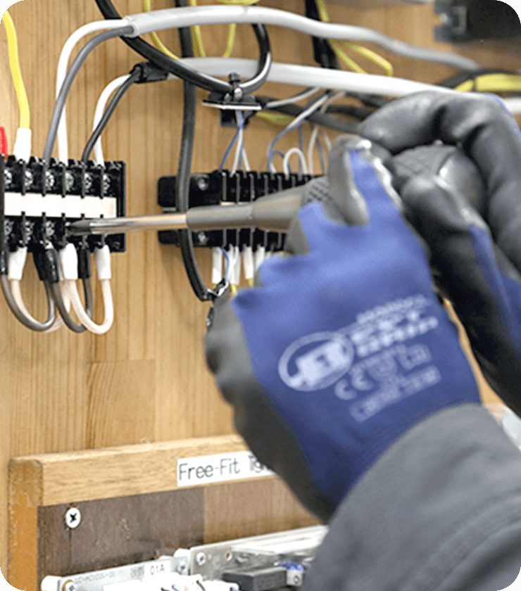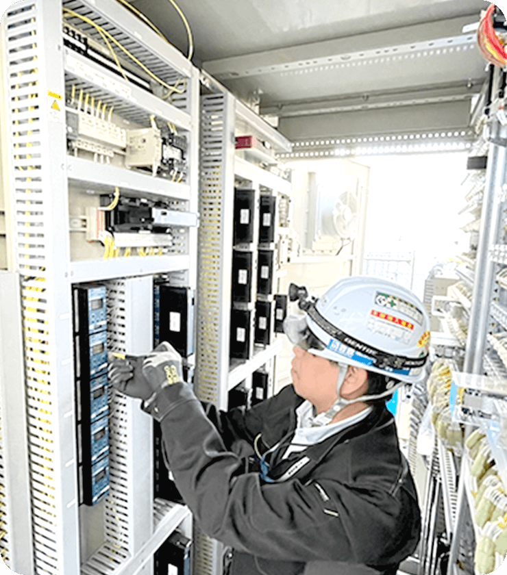 創造します。電気設備工事を主体に、設備の保守・点検や配電盤や制御盤の