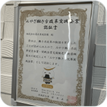 健康経営優良法人、みやぎ働き方改革実践企業のそれぞれの認証にともなう、積極的かつ継続的な健康経営への取組を行います。